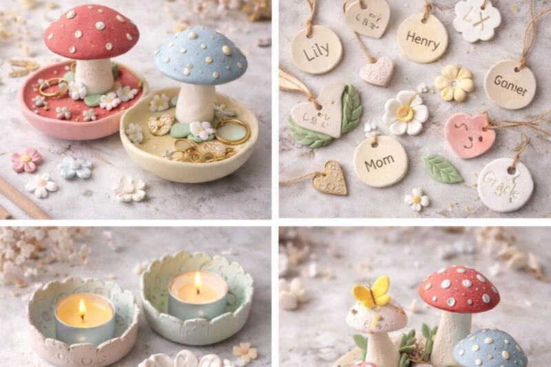 Se a ideia é decorar, aposte em suportes de incenso, mini vasos para suculentas artificiais e bandejas para joias. Você também pode criar plaquinhas para temperos, com escrita feita por pressão. Essas ideias massa de modelar ficam mais bonitas quando você mantém uma paleta de cores simples e um acabamento bem lixado.