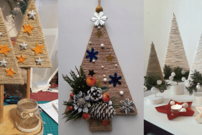 Mini Árvores de Natal Triangulares com Fio de Juta: Adicione Um Toque Rústico à sua Decoração de Natal